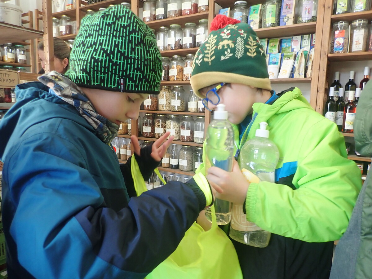 Pred časom smo za šolsko kuhinjo kupili okolju prijazna čistila znamke Tierra Verde. Ker smo jih že nekaj porabili, smo se odpravili v lokalno trgovino brez odpadkov, da bi dopolnili zaloge.